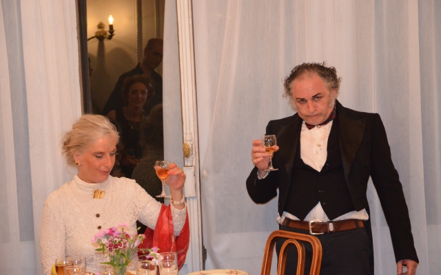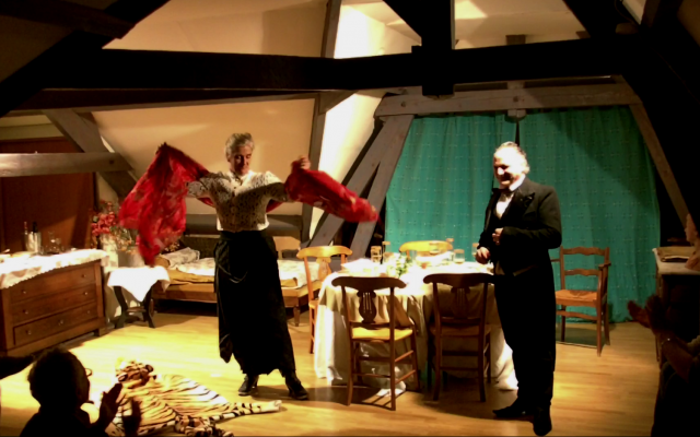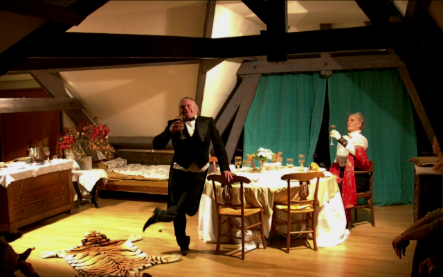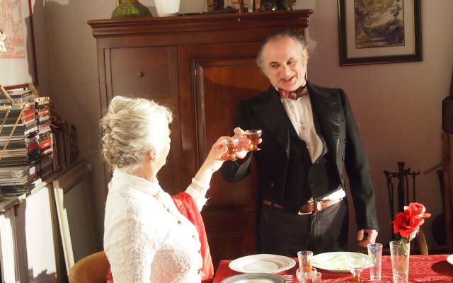 Cette pièce de Lauri Wylie est interprétée chaque année au nouvel an à la Télévision Allemande et dans de nombreux pays. Bien qu’interprétée en anglais ce grand classique du burlesque est compréhensible par tous : Miss Sophie, grande dame anglaise d’un age canonique convie chaque année ses vieux amis pour son dîner d’anniversaire. Mais étant tous morts c’est son majordome qui interprétera tous les personnages tout en faisant son service… Avec Linette Favreau et Jean-Michel Fessol, pièce costumée, décor chic, musique classique, 20 mn. La vidéo…